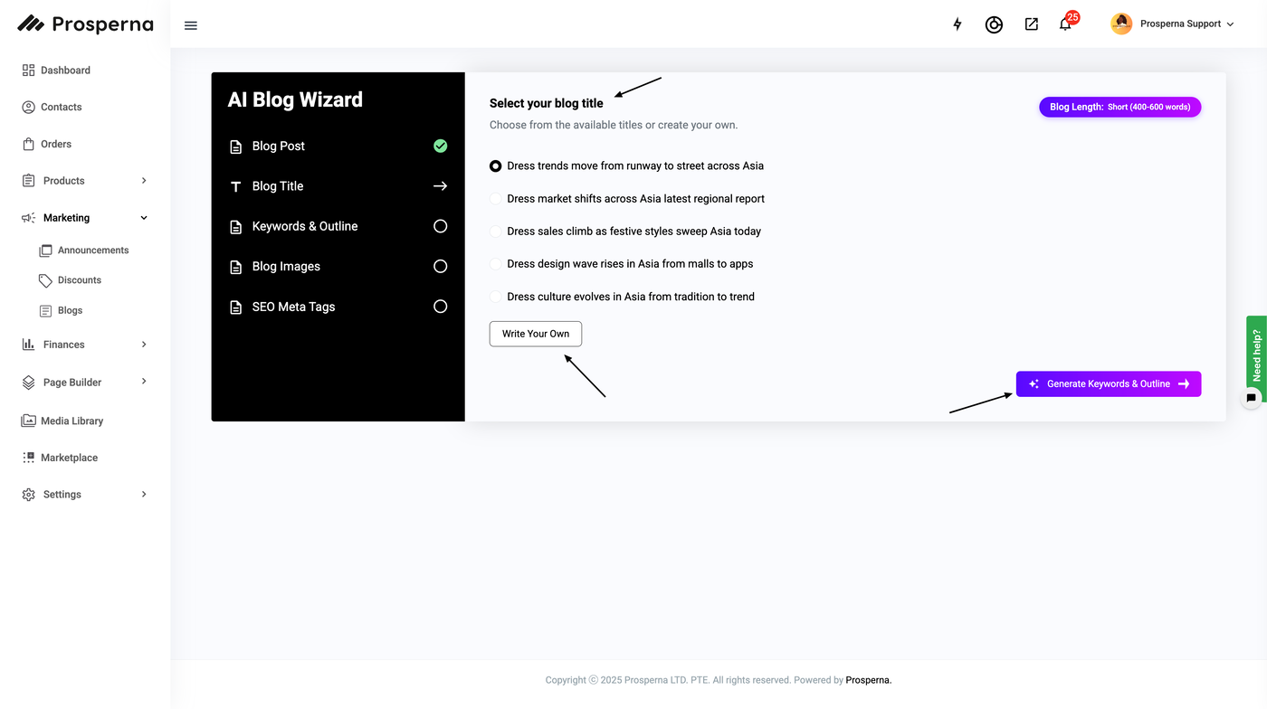 Create engaging, well-structured blog posts instantly with the help of Max AI. Simply provide a topic or idea, and Max AI will generate optimized content tailored to your store and audience.