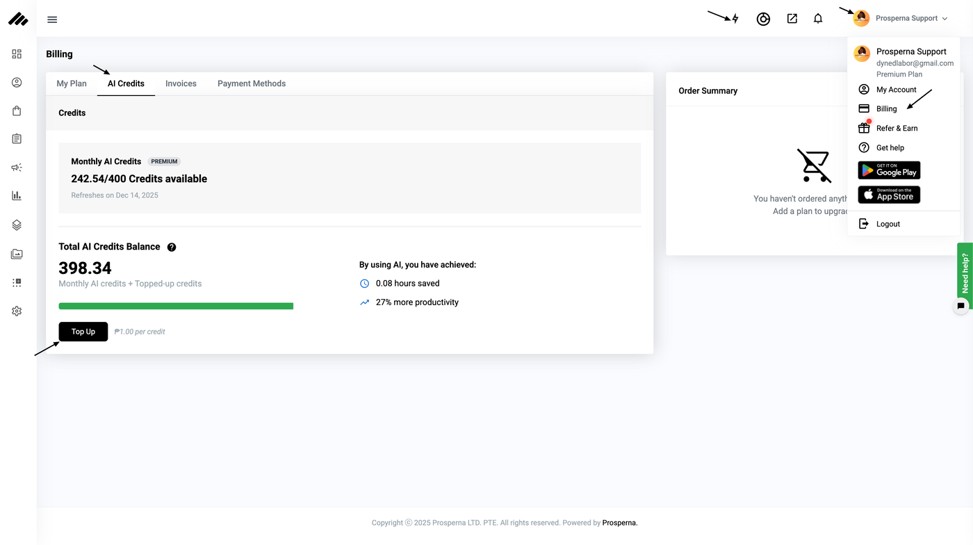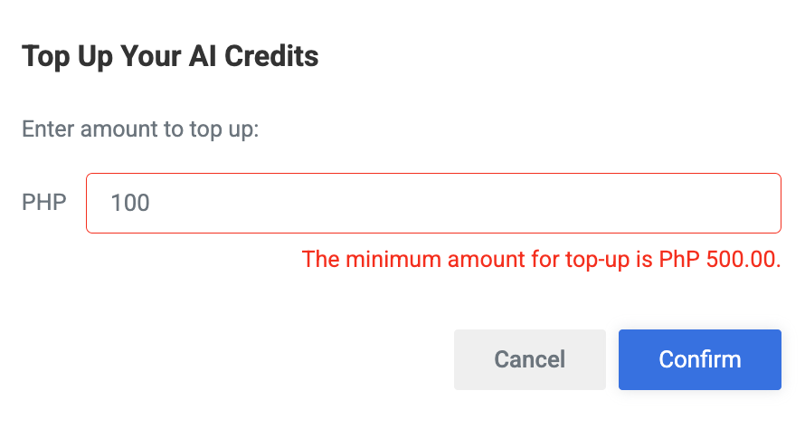 Why is it important? The system provides a monthly allocation based on your plan, and you also have the flexibility to purchase additional credits anytime for just ₱1.00 per credit. This ensures that you always have enough credits to maximize productivity and take full advantage of AI-powered capabilities.