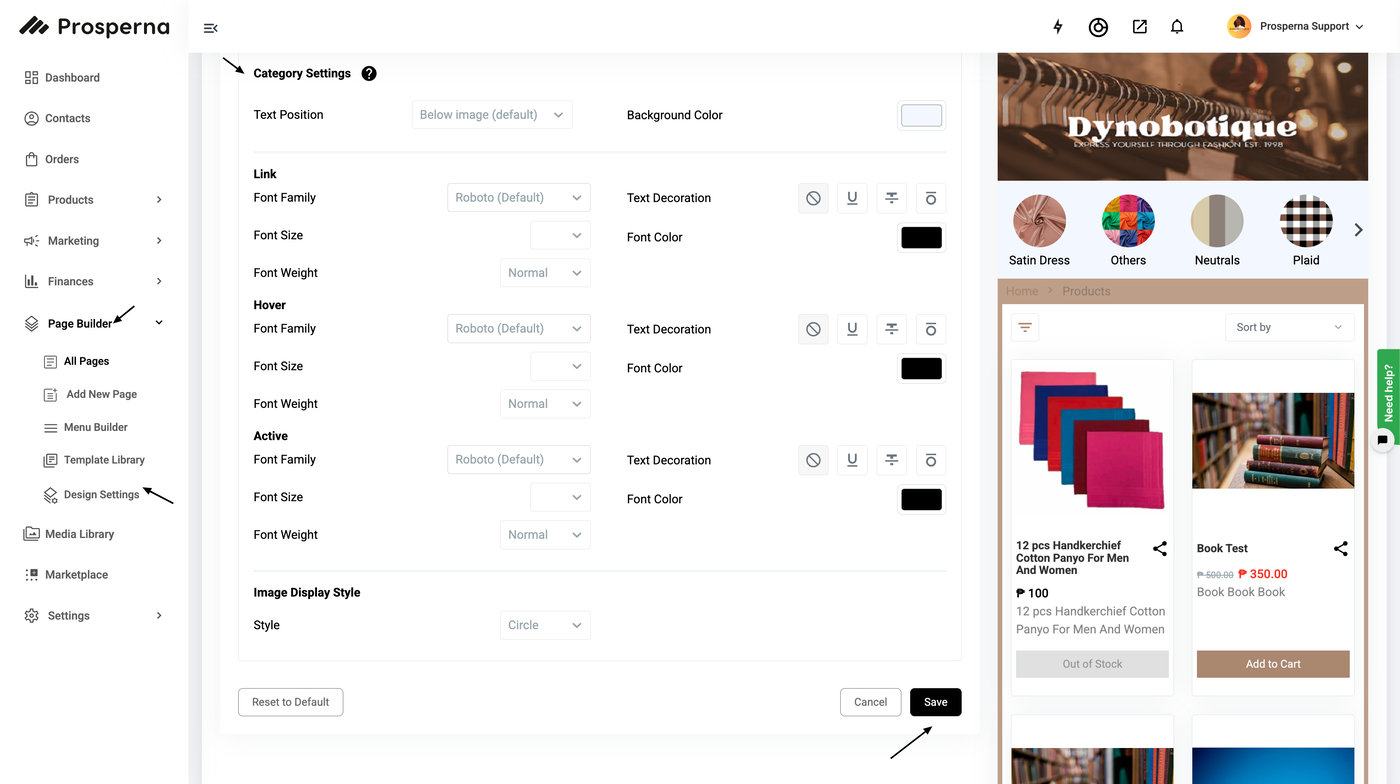 2. Click on Design Settings. Go to Color & Style and select Category Settings.