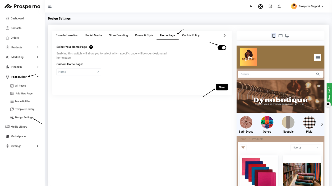 The Custom Home Page feature provides merchants with the flexibility to choose and designate the specific Home Page they wish to display on their website.