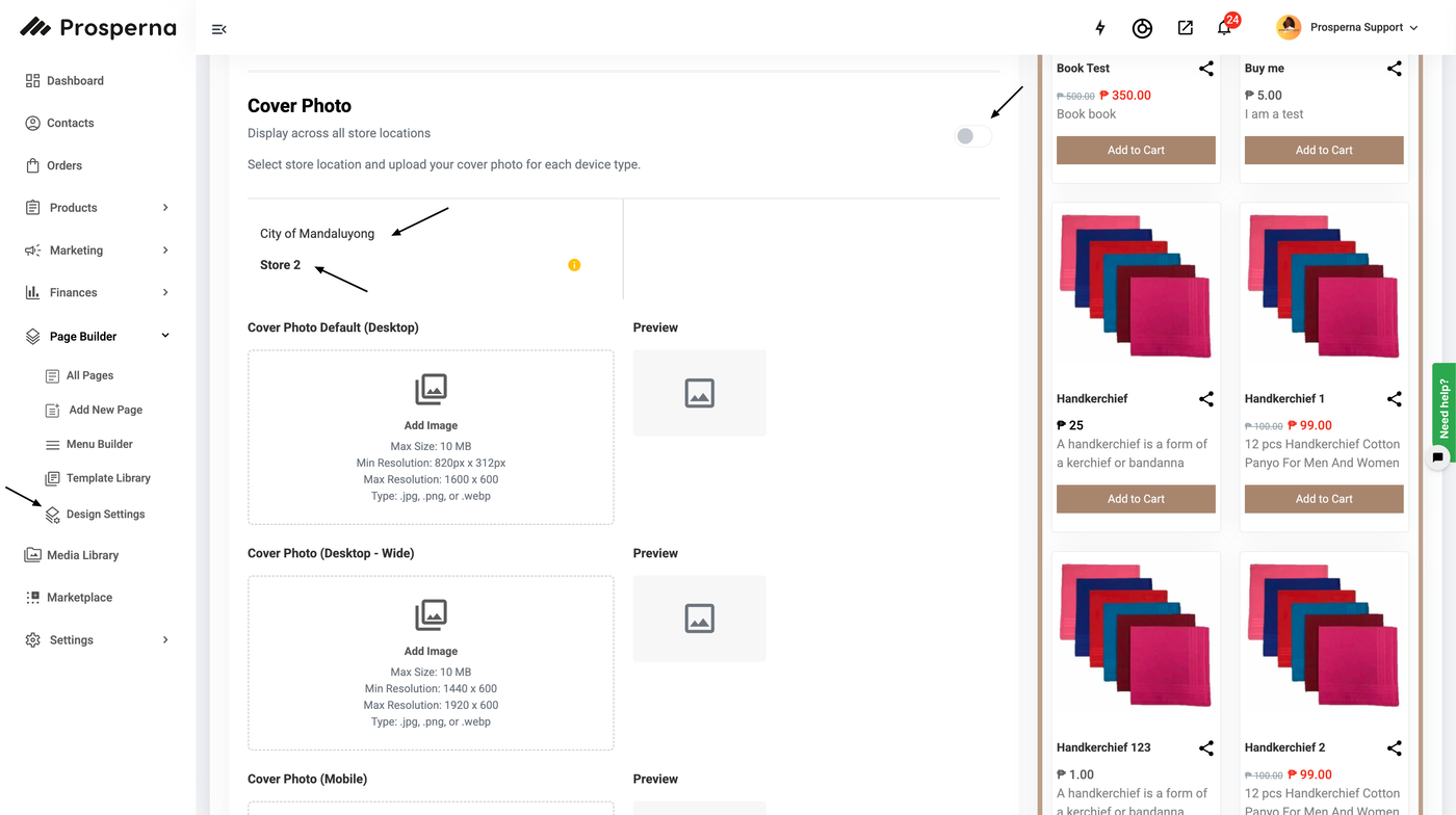 Updating cover photo for multi-location feature enables unique banners for each branch in product listings, allowing every location to display a distinct cover photo.