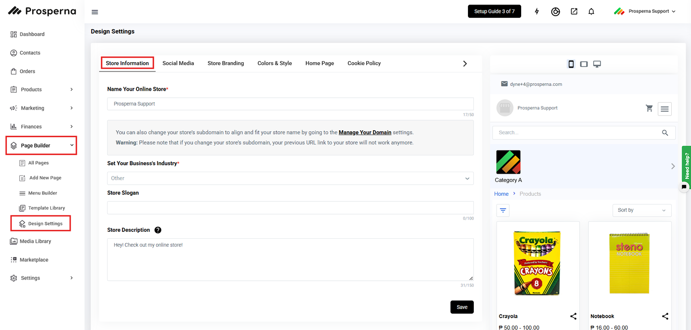 New signups can follow the Setup Guide to complete everything they need to start selling with Prosperna.