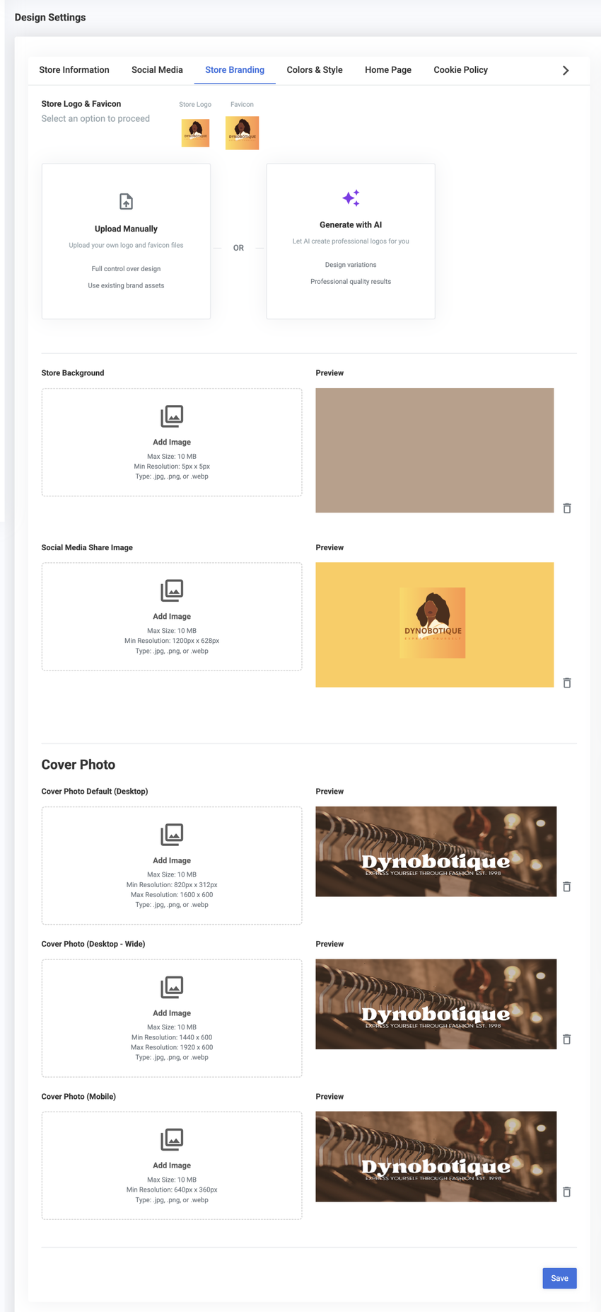Note: By default, the cover photo is the same for all locations. If you want a different cover photo for each location, disable the "Display Across All Store Locations" option. Check here for instructions on updating the cover photo for each location.