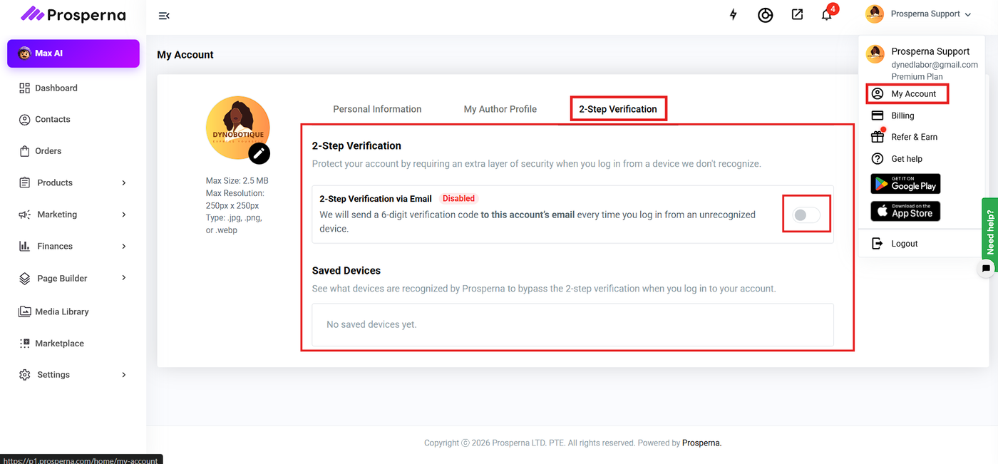 2-Step Verification is an extra layer of security to your Prosperna account by requiring a one-time verification code whenever you log in from an unrecognized device. This helps protect your account from unauthorized access.
