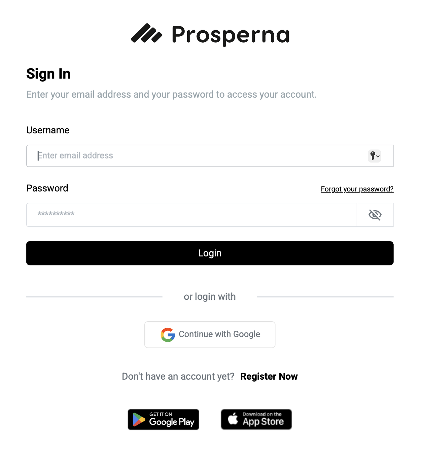 Once redirected to Google, you will be asked to authorize access to log in or create a Prosperna account using your provided credentials.
