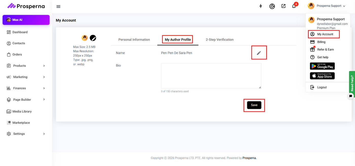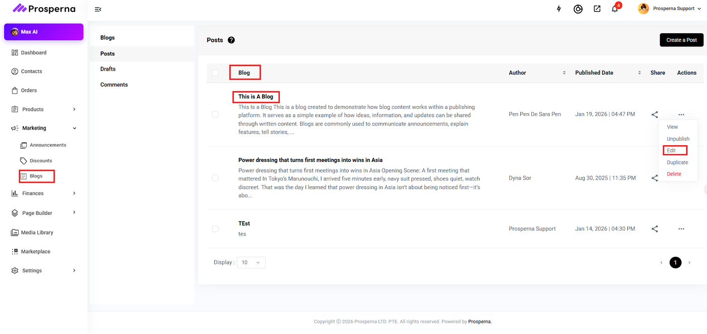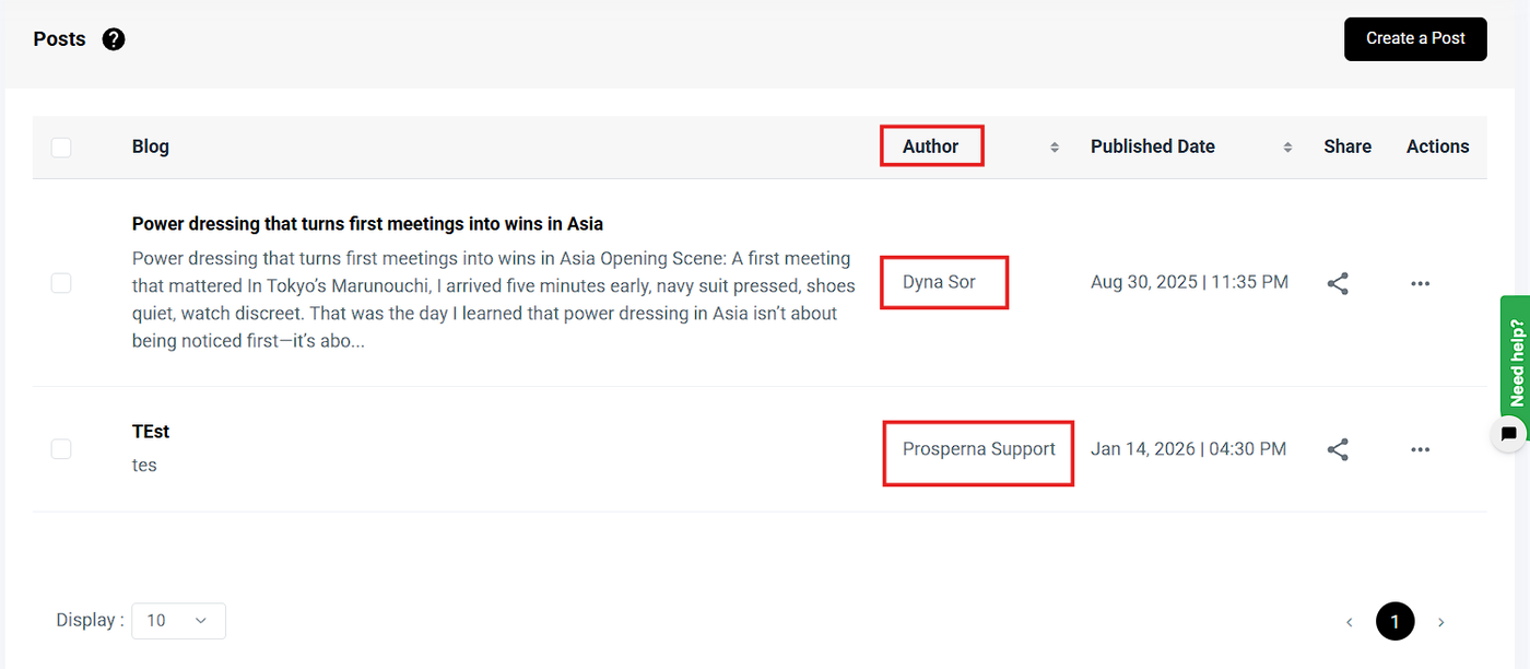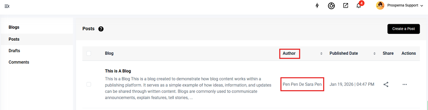 Your Author Profile determines the default author name used when creating blog posts in your Prosperna account. This helps standardize how authorship is displayed across your published content.
