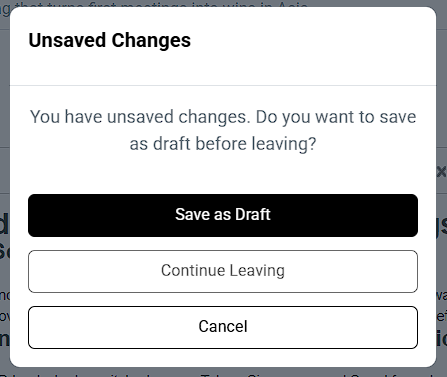 Note: If the blog post has unsaved or unfinished content, a confirmation prompt will appear.