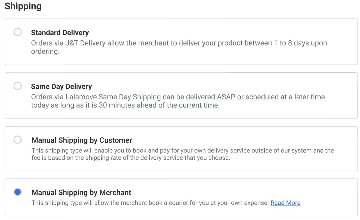 3. Shipping methods displayed depend on the merchant’s configured shipping rules.