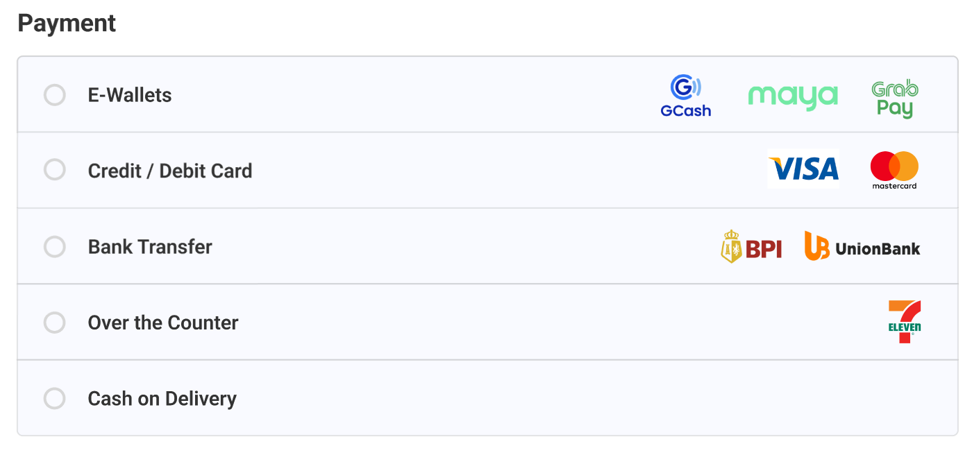 Existing payment gateway logic remains — only the UI (layout) changes.