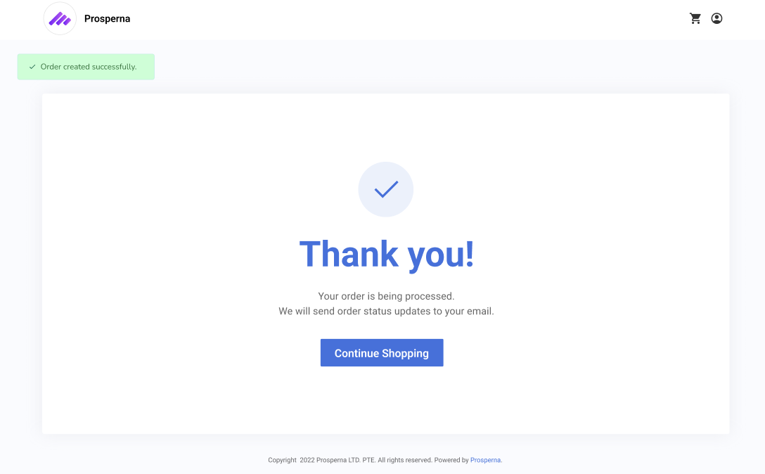 7. On successful payment, the order is placed and the customer is redirected to a confirmation (“Thank You”) page.