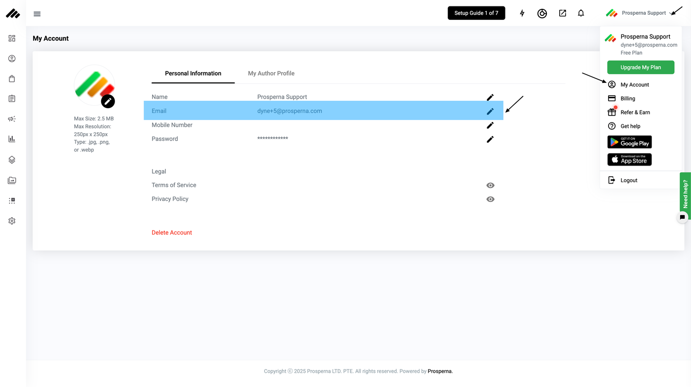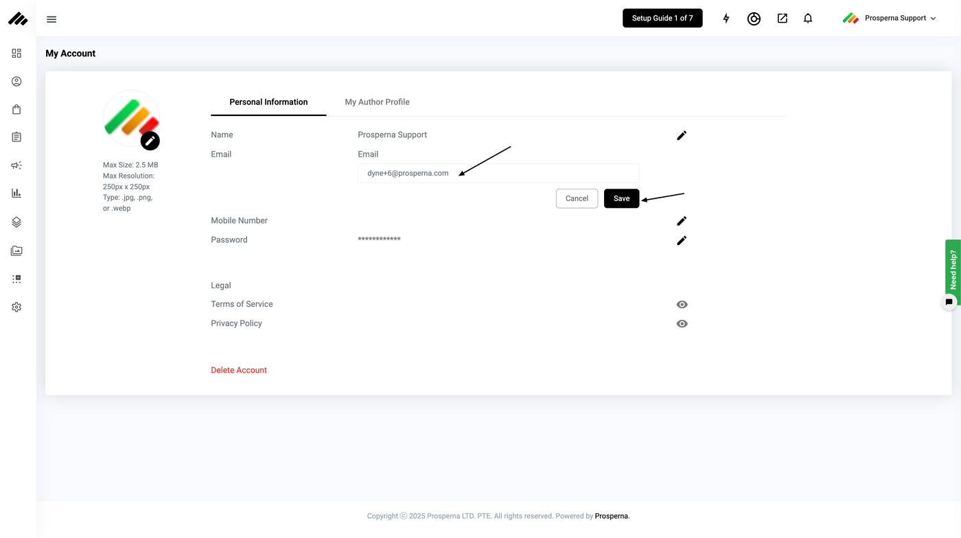 After clicking save, the prompt "Email Updated Successfully" should appear.