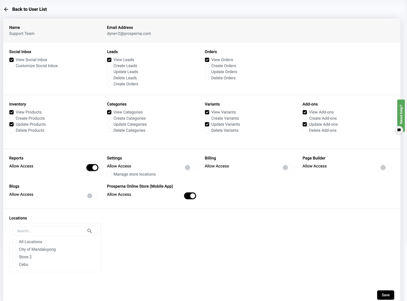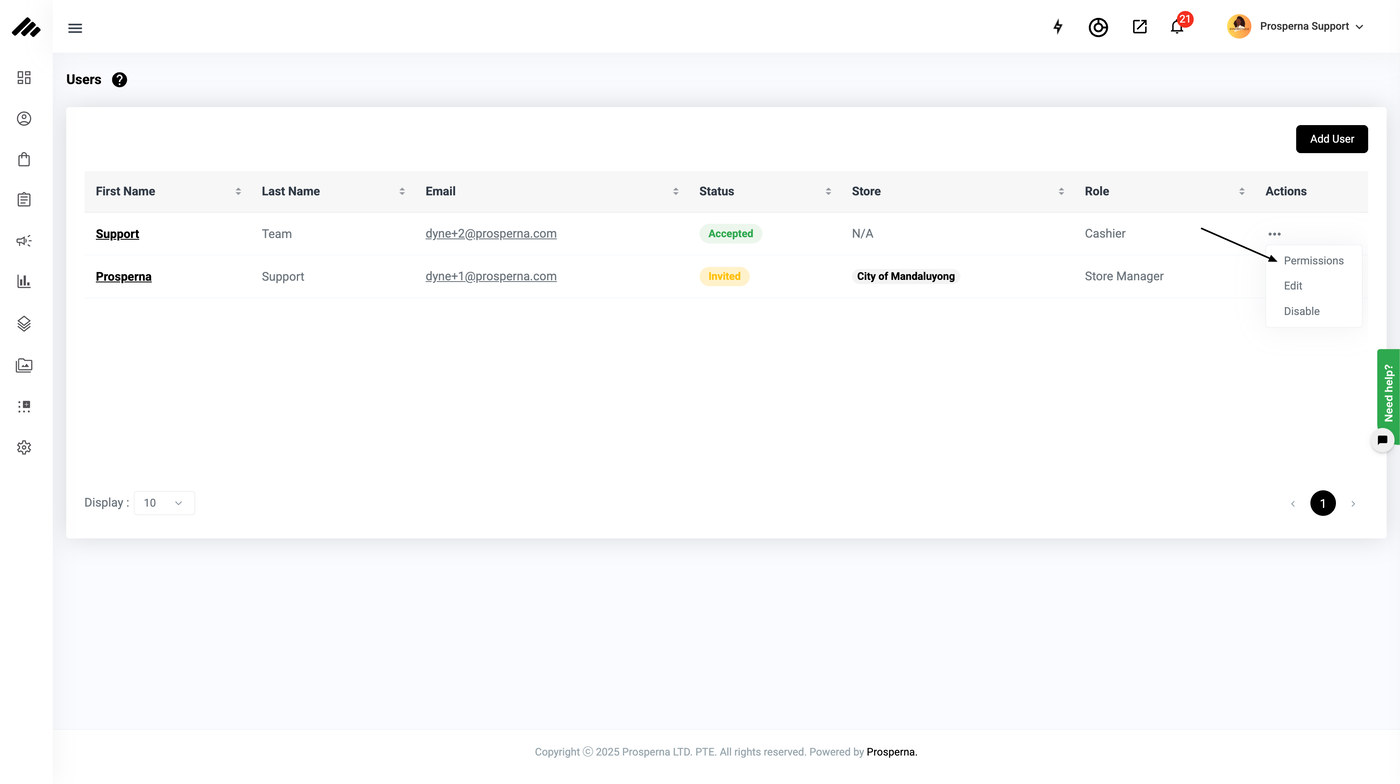 Manage who has access to your Prosperna Account by adding users and assigning permissions. Users can be admins, moderators, and more, depending on how much access you want them to have to your store. That way, you can secure your store, while others manage different transactions for you.