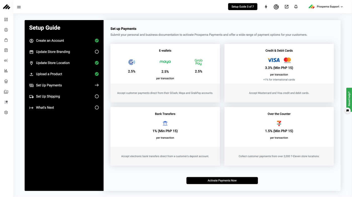 2. Or, Go to Settings, Select Payments & Click Activate Now.