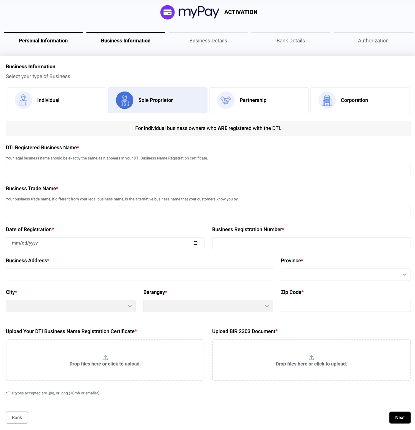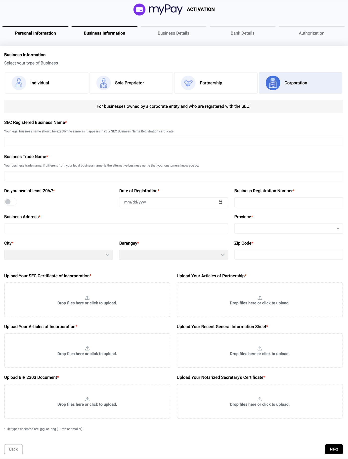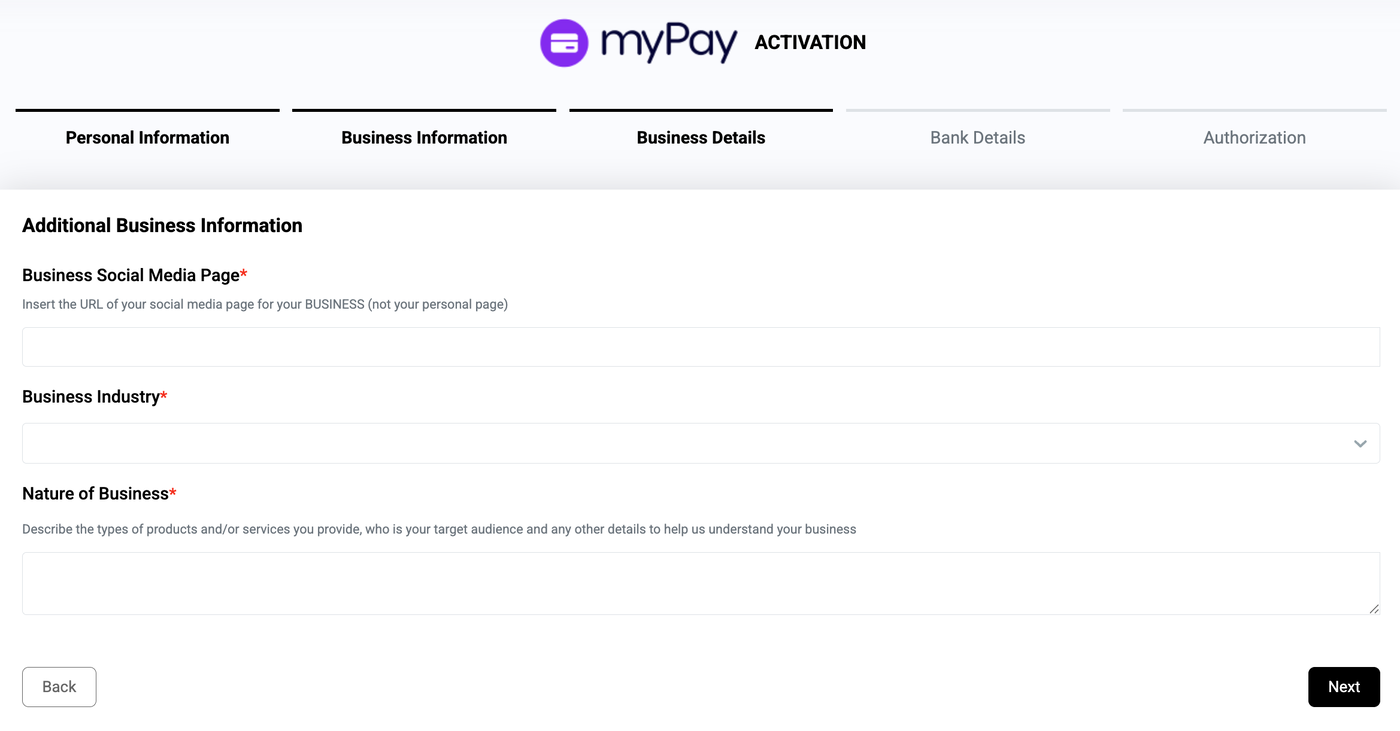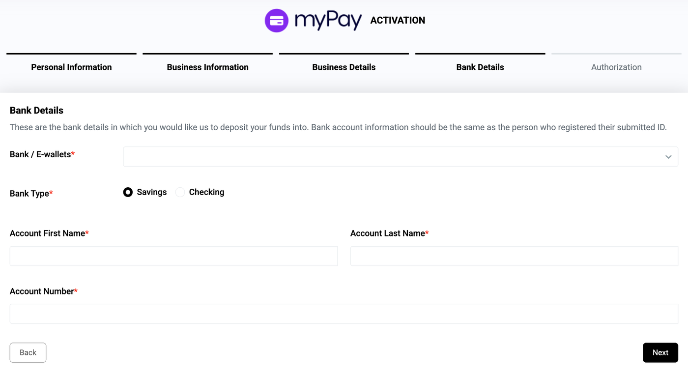 To increase customer convenience and generate more revenue, activate your myPay by submitting relevant KYB documents.