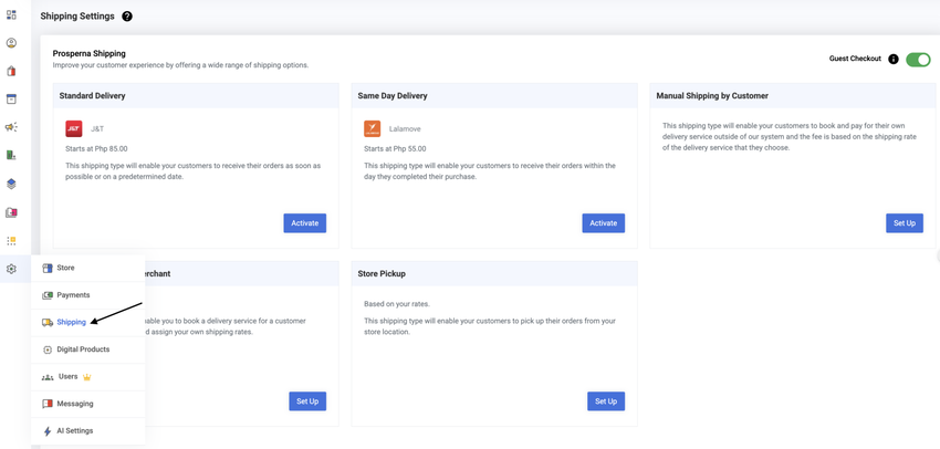 - This shipping type will enable your customers to pick up their orders from your store location.