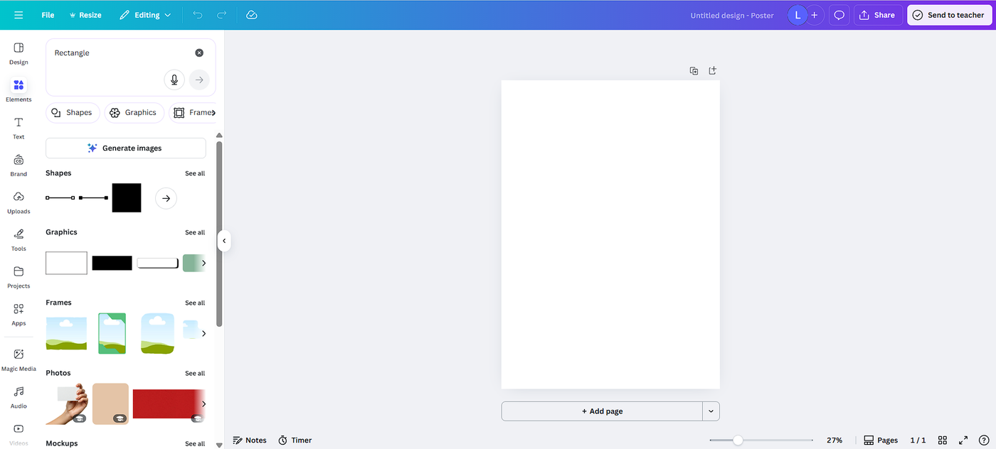 1. Create a Blank Template, and choose from the visual templates on the right side (Lines and shapes, images, graphics) to create your logo