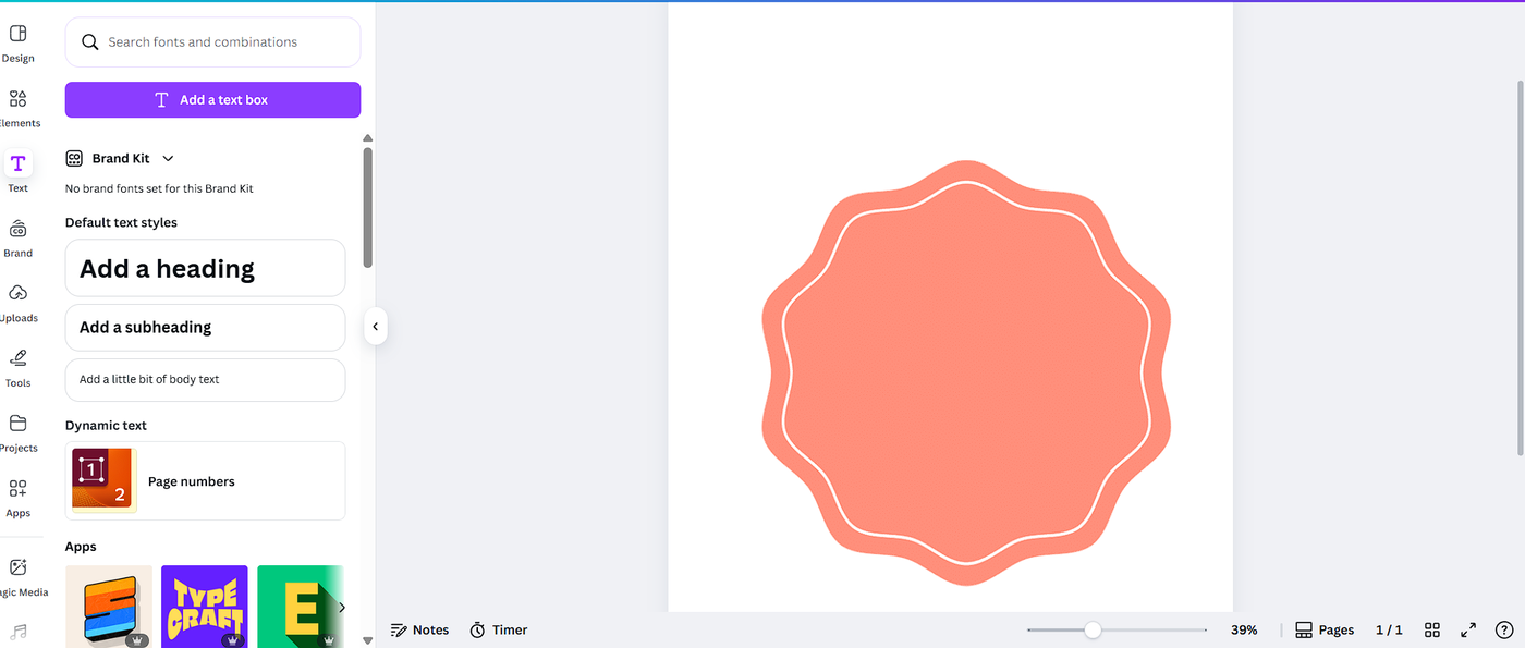 2. After you’ve chosen your desired visual for your logo, click on the text to type your business name or tag line. You can choose from Canva’s ready made fonts or word art.