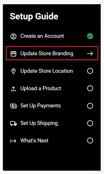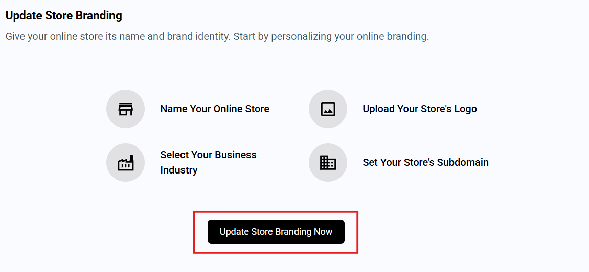2. After Creating an Account, go to Update Store Branding and Click Update Store Branding Now