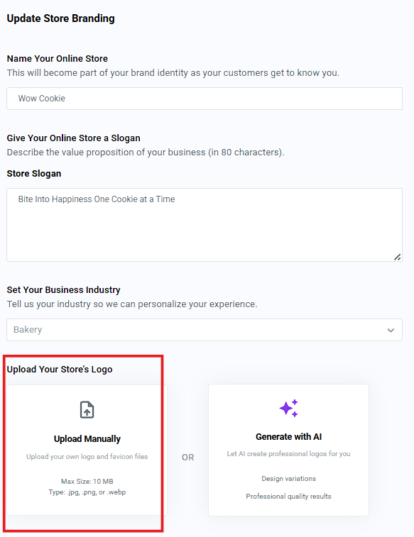 After creating your account, go to Update Store Branding and click Update Store Branding Now.