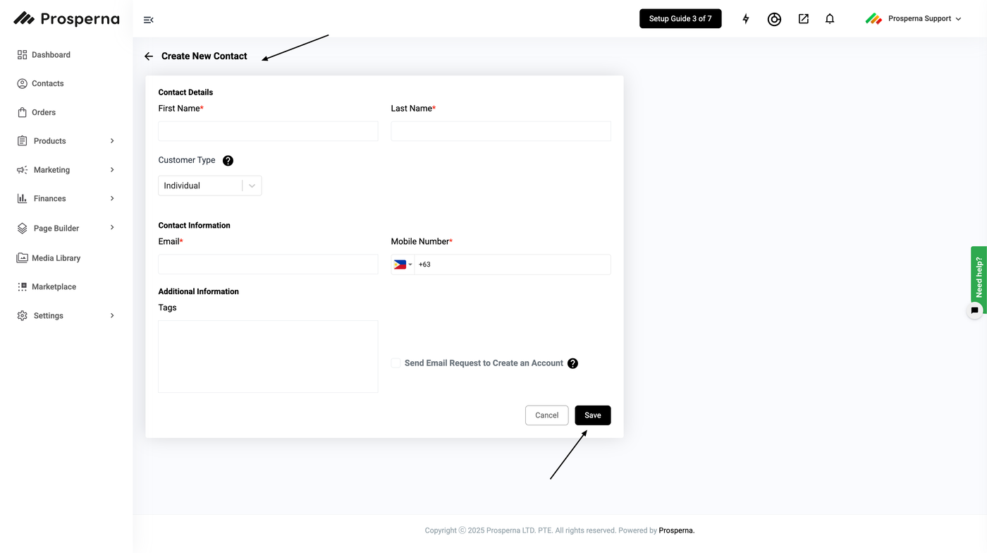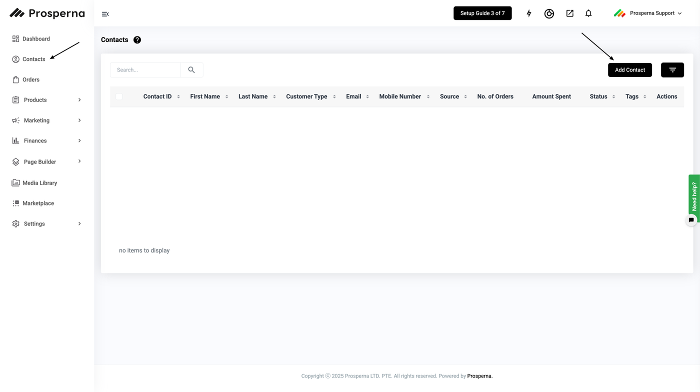 Why is it important? Adding contacts to your Prosperna Store allows you to track customer order history, activities and send marketing campaign messages, so you can stay connected with them at all times.