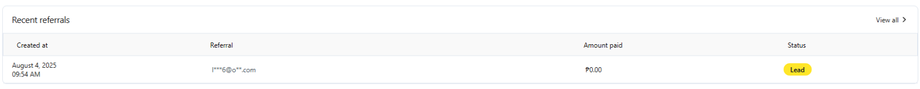 Amount Paid – How much the referral paid (₱0.00 if unpaid)
