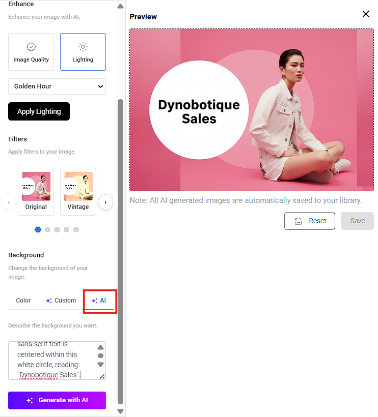 Enhance your image with AI.(Image Quality, Lighting adjustments).