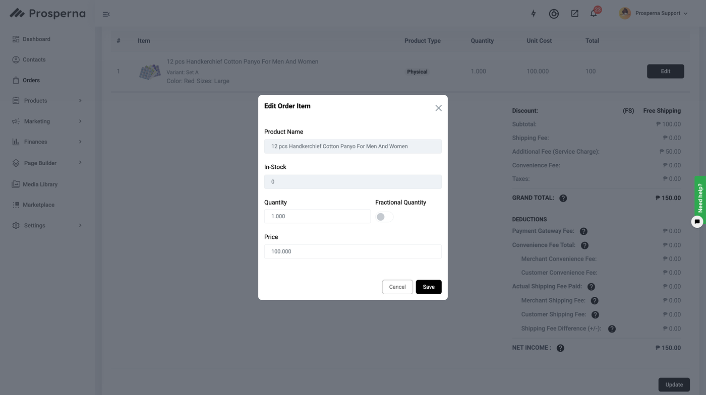 Enable the option to edit the price and quantity of items in an order. Once changes are made, customers are automatically notified in real time, ensuring transparency and accuracy in every transaction.