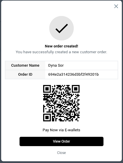 After an order is created, the merchant can now send a QR code for their client to pay.