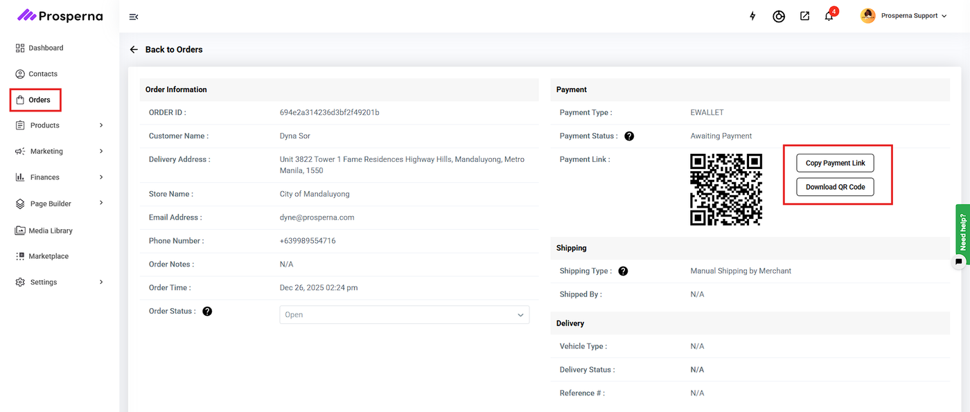 You can also go to Orders and select the specific order to download or copy the payment link.