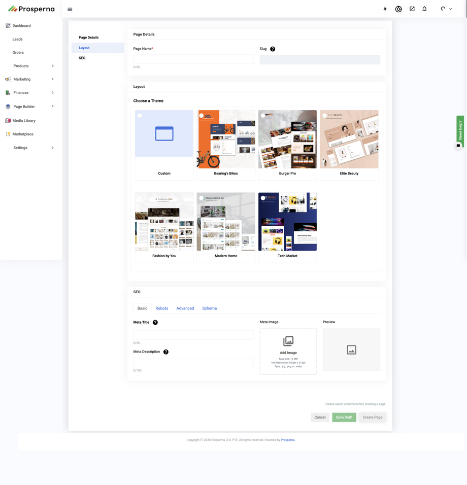 Result: You have successfully created a new Page and automatically routed to the page builder.