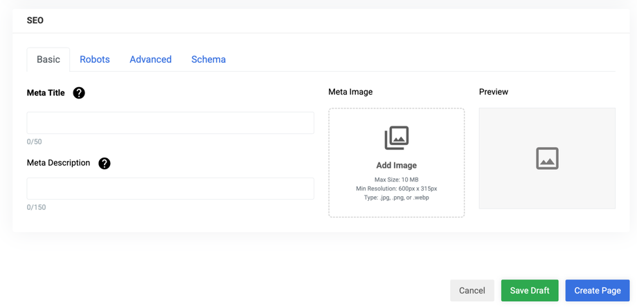 Advanced Tabs (Robots, Advanced, Schema) (optional)