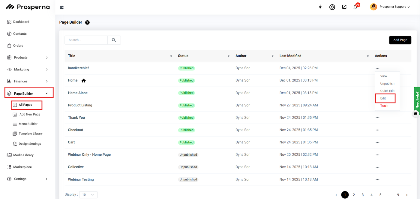 Click on the three dots on the left slide. If you will edit your page, click Edit