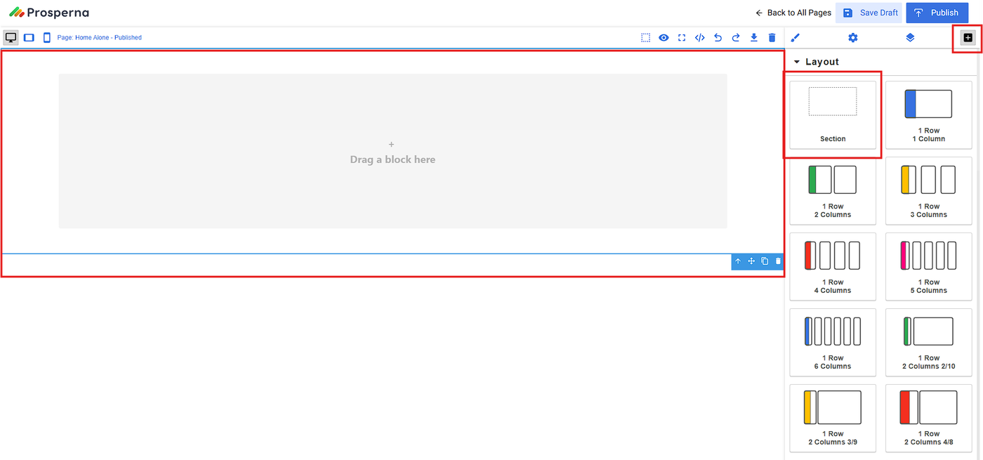 3. Once you are in the editing pae, click on the “+” sign to add a section.