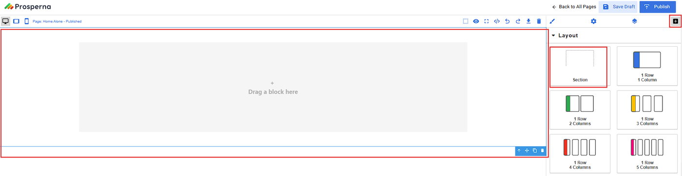 Drag and drop the Section to the page builder