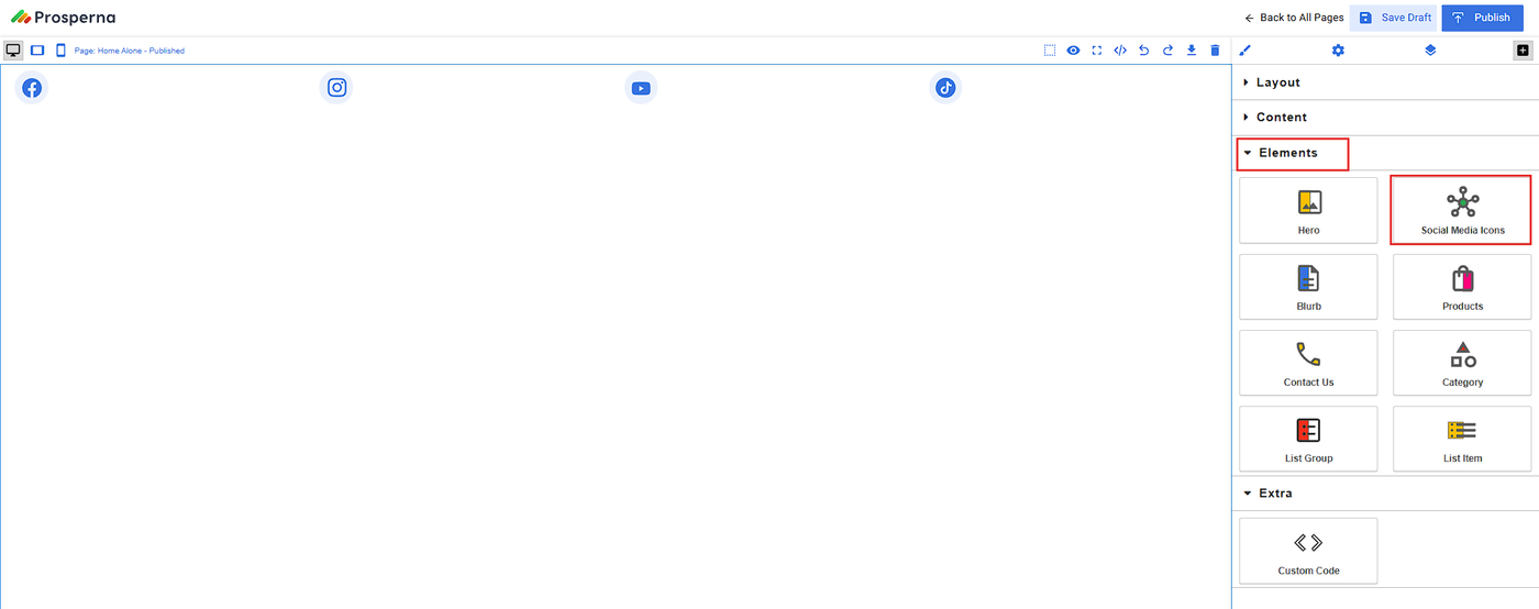 Click on the Social Media Icon and drag and drop it to the section block