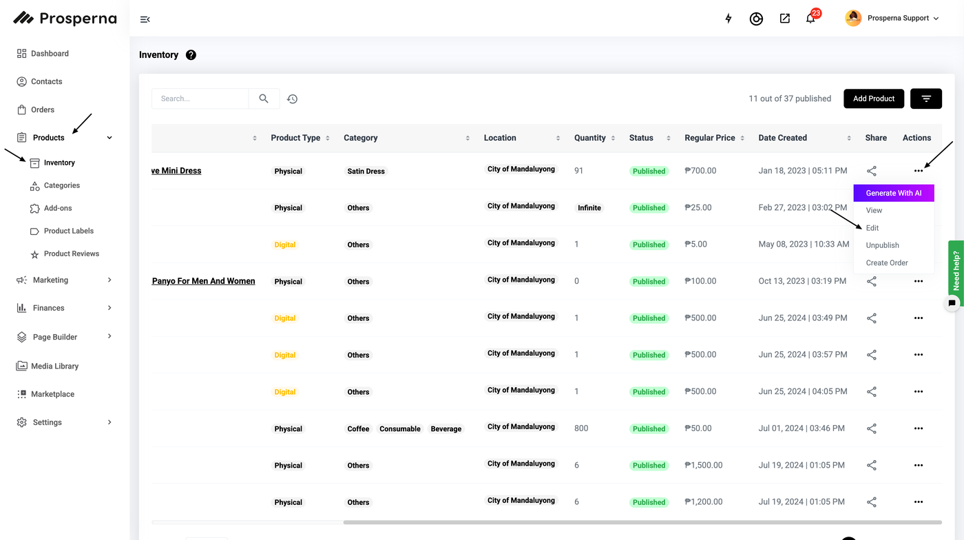 1.Go to Products and select Inventory.