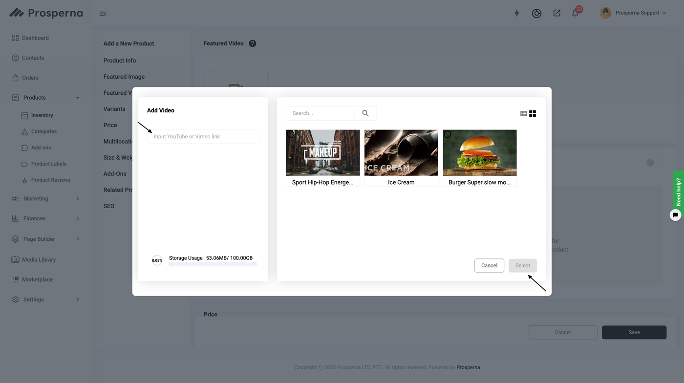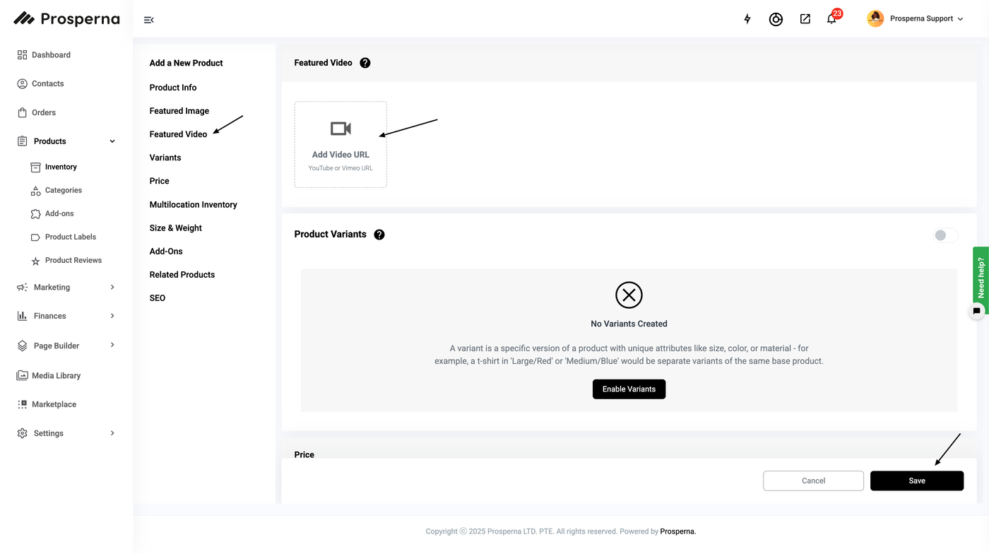 Steps to Add Video in Products