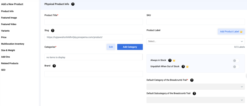 Always in Stock - Enable to set the product stocks as always available to be purchased.