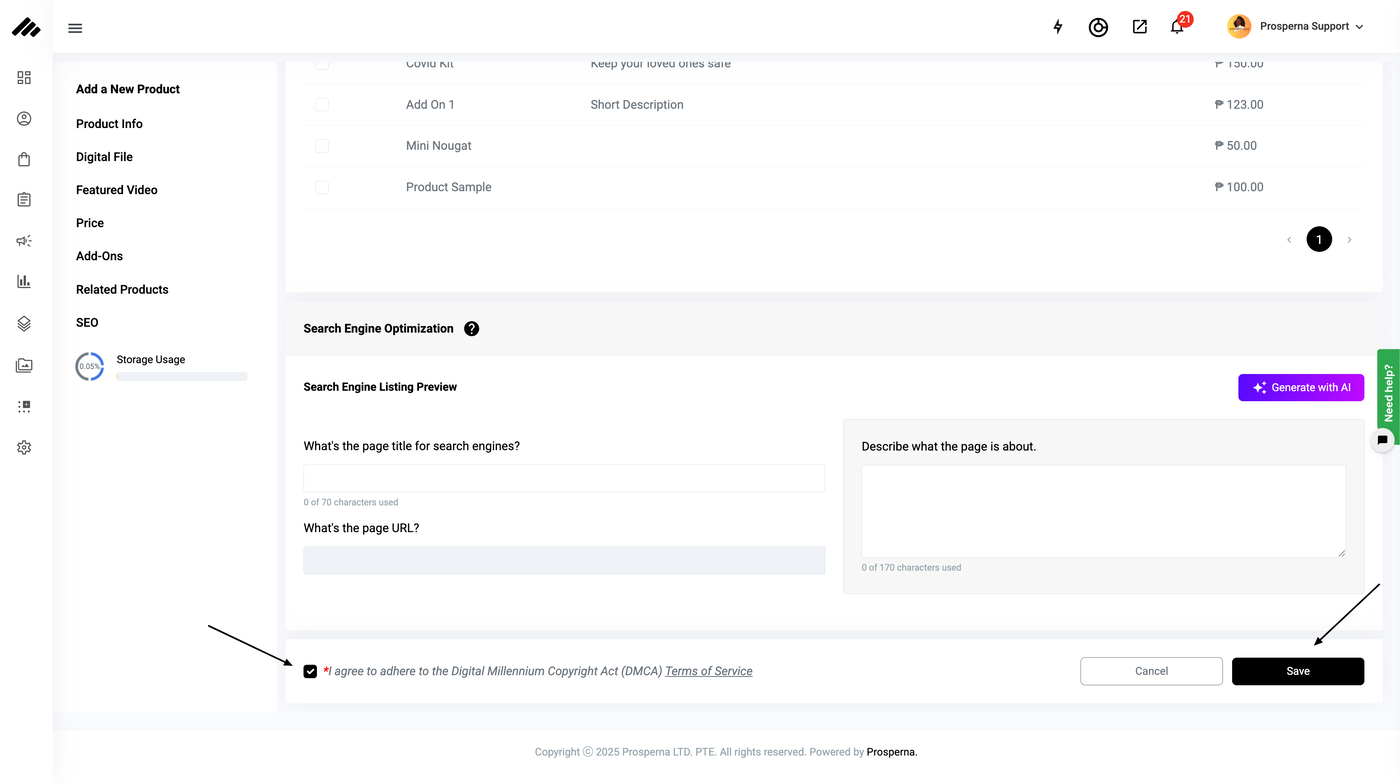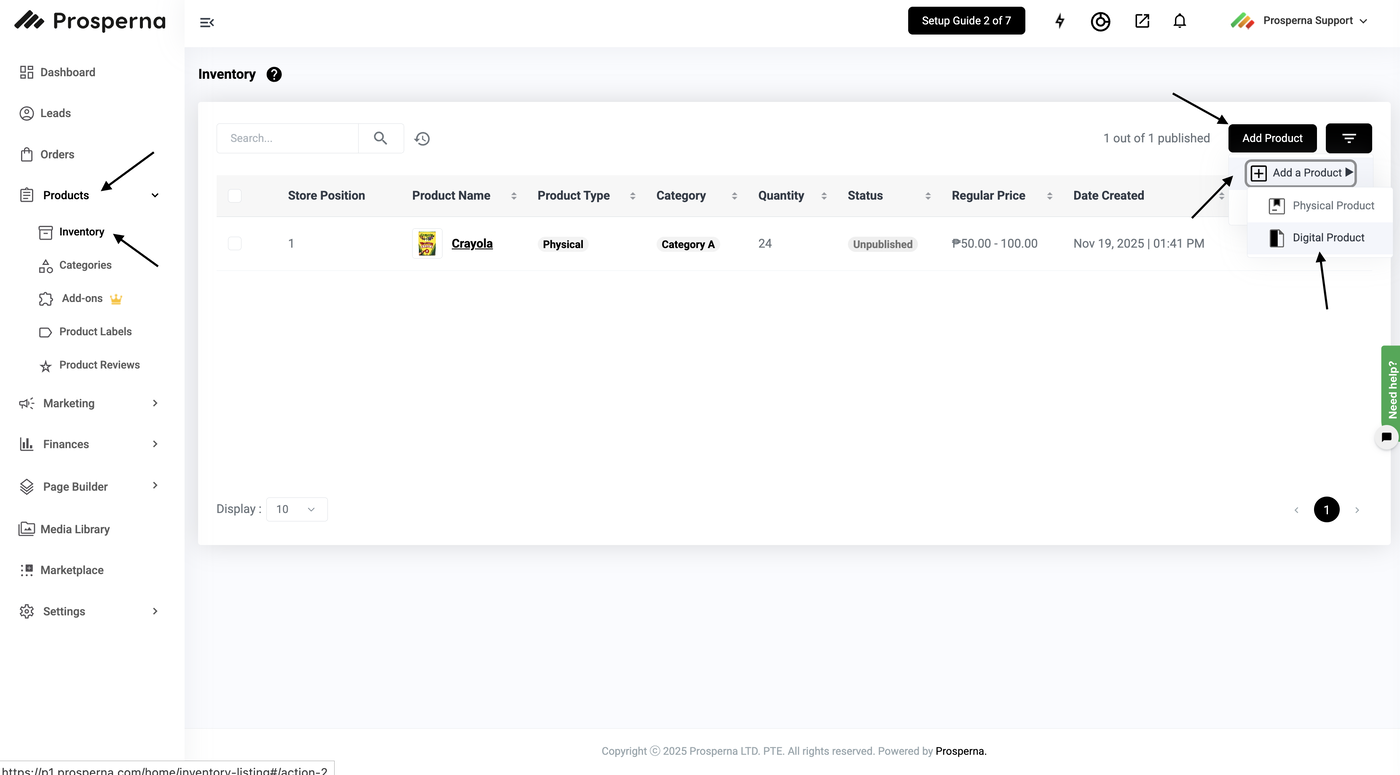 Digital products can take many forms, such as ebooks, courses, software, music, and art, among others. One of the advantages of selling digital products is that they can be produced once and sold multiple times, which means that there are no additional manufacturing or distribution costs. In Prosperna, you can sell physical and digital products in one platform.