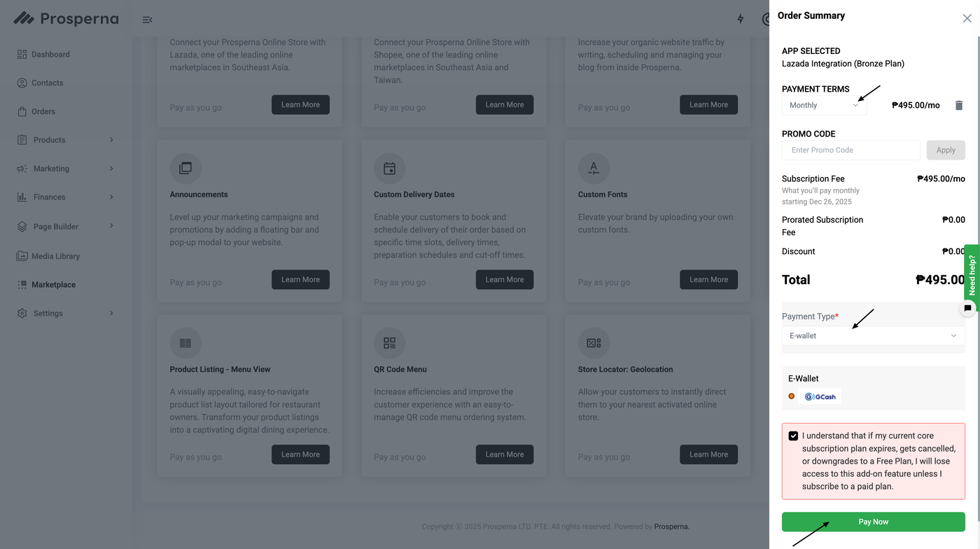 6. After securing your subscription, you must activate the Integration App first by going to the Marketplace then choose the “My Apps” tab above where you can see the Integration App on a card, and inside there is a button that says “Activate”.