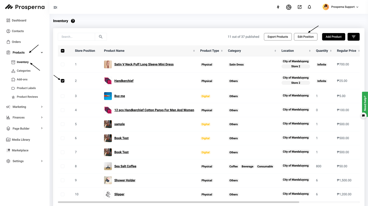 Position: Input the number were you want to reposition the product. Move the Categories one by one, if you select more than it will just follow the position of the first.