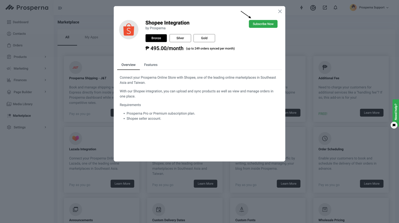 Result: You have now successfully integrated your Shopee account to your Prosperna account.