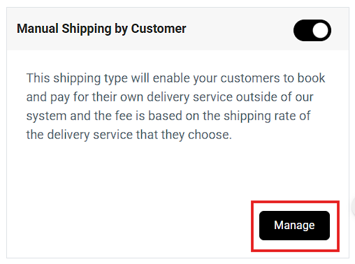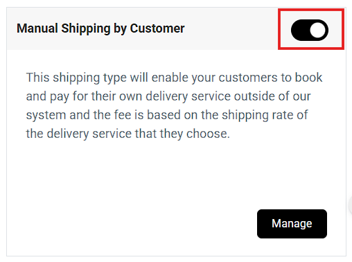 Why is it important? This shipping type will enable your customers to book and pay for their own delivery service outside of our system and the fee is based on the shipping rate of the delivery service that they choose.