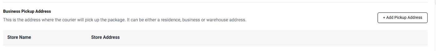Click on '+Add Pickup Address' Button