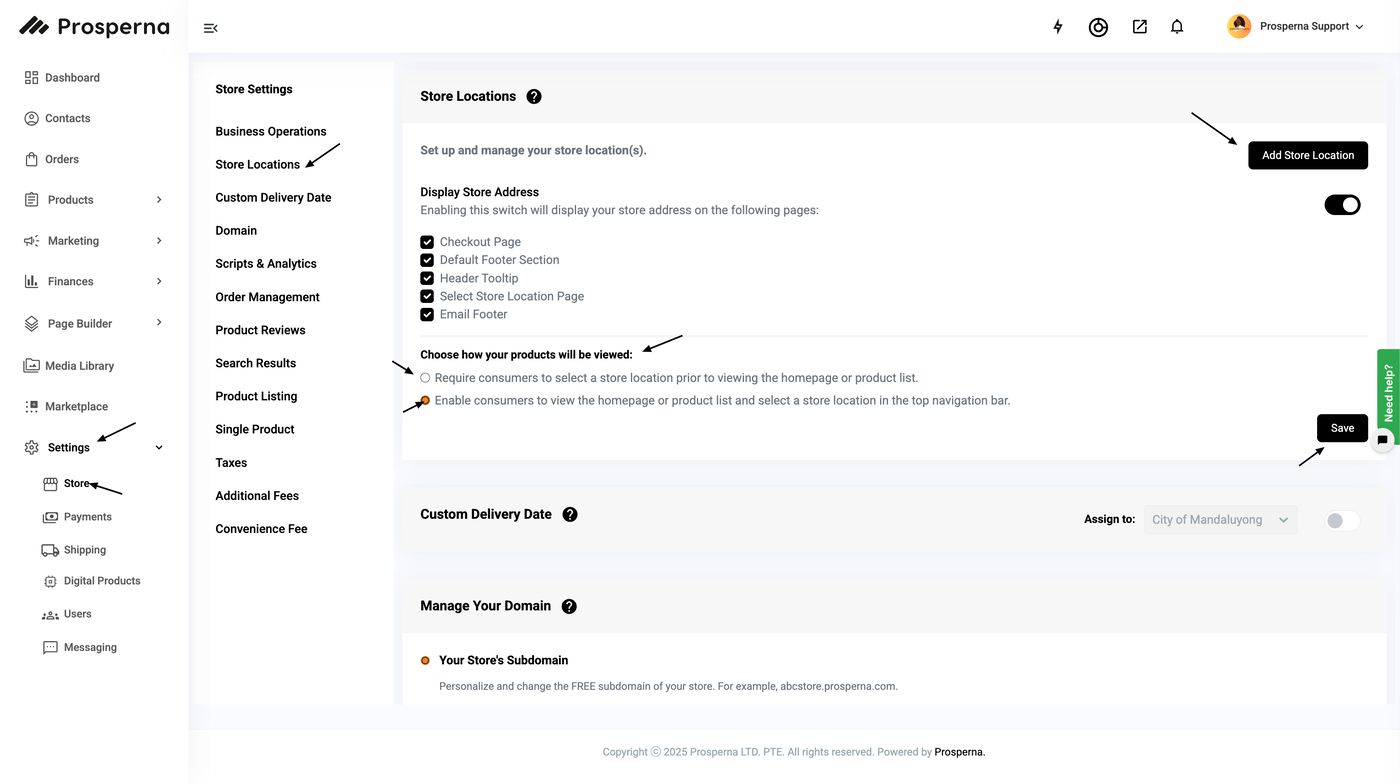 3.2 For Enable consumers to view homepage or product list and select store location in the top navigation bar, this is how it will look like: