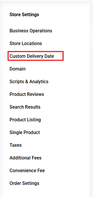 Go to Settings → Store Settings → Custom Delivery Date.