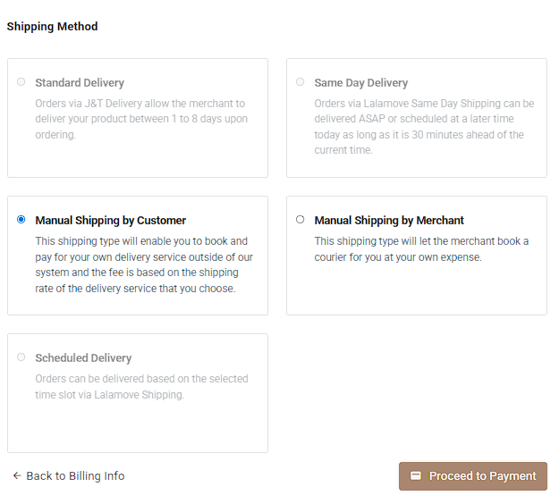 Using Manual Shipping by Merchant (CDD ON + Scheduled Delivery OFF):