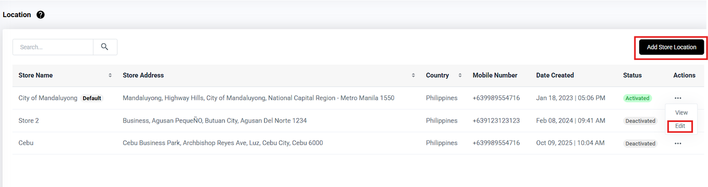 4. You can edit or add a store location to set the geolocation for the specific store you want to configure.