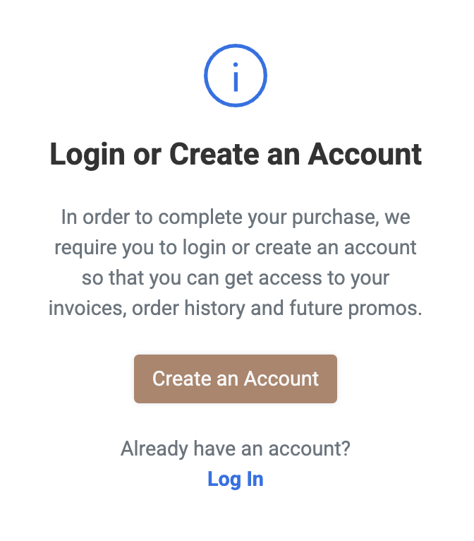 - If Guest Checkout is disabled (as per the merchant’s settings), customers will be required to log in or create an account to continue.